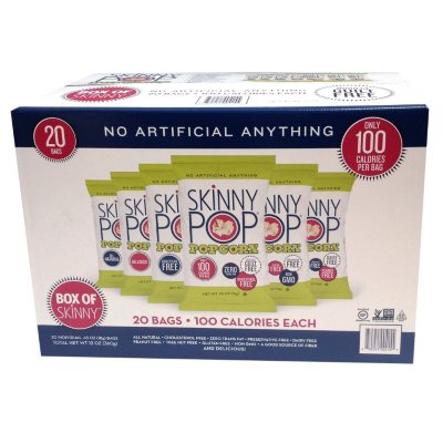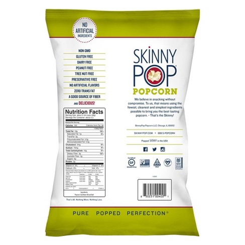 Amazon.com: SkinnyPop Original Popcorn, 30ct, 0.65oz Individual Snack ... SkinnyPop Original contains 30 (0.65 oz) popcorn bags Delicious Skinny Pop Popcorn has zero trans fat and is peanut free, tree nut free, preservative free and is a good source of fiber A delicious, healthy snack perfect for kids lunches, break between video calls, or just a snack for yourself. The perfect snacks for kids