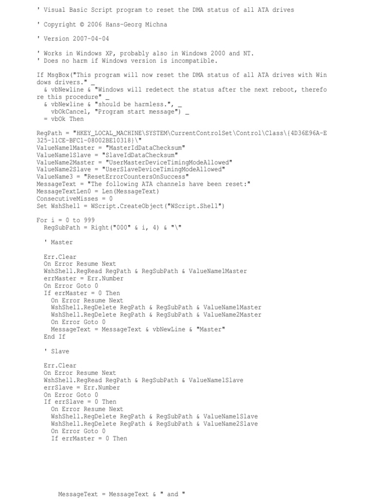VBscript examples of Error Handling - automationScript To show the use of different error handling statements in vbscript, we will use a function which divides an integer by zero (code given below) and produces "Division by zero error". Then we will use each error handling statements using vbscript view raw dividezero.vbs hosted with by GitHub Division by zero error Contents [ hide]