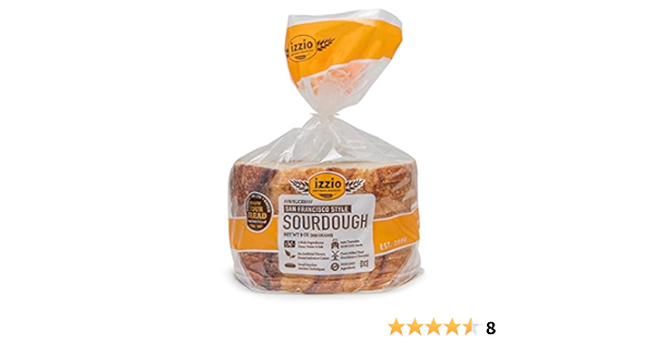 4 Packs of Izzio 8 Slice: San Francisco Style Sourdough Bread Product details. UPC : 657082073349. Manufacturer : Izzio. ASIN : B09GV74QNP. Best Sellers Rank: #341,578 in Grocery & Gourmet Food ( See Top 100 in Grocery & Gourmet Food) #37 in Sourdough Sandwich Bread. Customer Reviews: 4.4 out of 5 stars. 8 ratings.