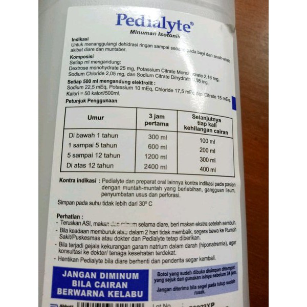 Fluid replacement, electrolyte solution (include PEDIALYTE) Nutrition ... Weight gain: The good: This food is very low in Saturated Fat and Cholesterol. It is also a good source of Potassium. The bad: This food is very high in Sodium, and a large portion of the calories in this food come from sugars. Pedialyte® Facts & Answers Pedialyte contains the quantity and ratio of sugar (glucose) and minerals (electrolytes) recommended by the American Academy of Pediatrics. This precise balance of sugar and electrolytes makes Pedialyte effective in the management, treatment, and prevention of dehydration due to diarrhea with or without vomiting. Pedialyte Electrolyte Solution | Walgreens Pedialyte Electrolyte Solution at Walgreens. Get free shipping at $35 and view promotions and reviews for Pedialyte Electrolyte Solution Pedialyte® - Abbott Nutrition Water, Sugar, Orange Juice Concentrate (1.75%*), Dextrose (1.35%), Acidity Regulator (INS 330), Sodium Citrate (0.29%), Potassium Chloride (0.15%), Sodium Chloride (0.125%) and Ascorbic Acid. PREPARATION. Once open, consume immediately or store under refrigerated conditions and consume within 24 hours and discard the remaining product.