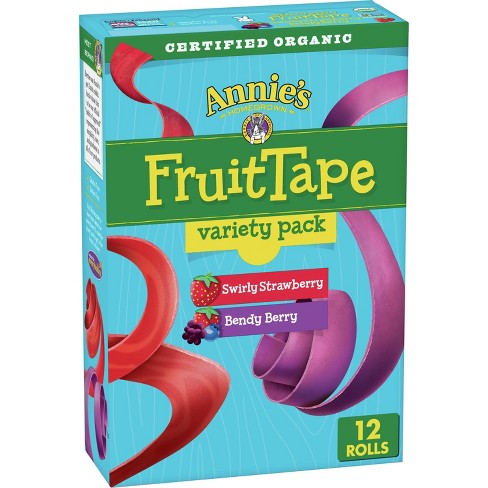 Annie's Fruit Tape Variety Pack Fruit Snacks - 12ct : Target REAL INGREDIENTS: No artificial flavors, synthetic colors, or high fructose corn syrup. CERTIFIED ORGANIC: Made with real organic fruit juice. Certified organic ingredients are grown without persistent pesticides. GLUTEN FREE: Annie's organic fruit tape is vegan/gelatin free, and naturally gluten free. BOX CONTAINS: 12 rolls, 128g.