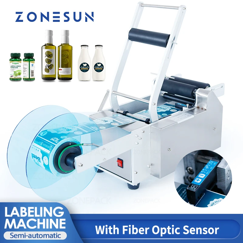 ZONESUN Semi Automatic Oil Wine Round Bottle E-juice Vial Labeling Machine Self-adhesive Label Sticker for Cosmetic