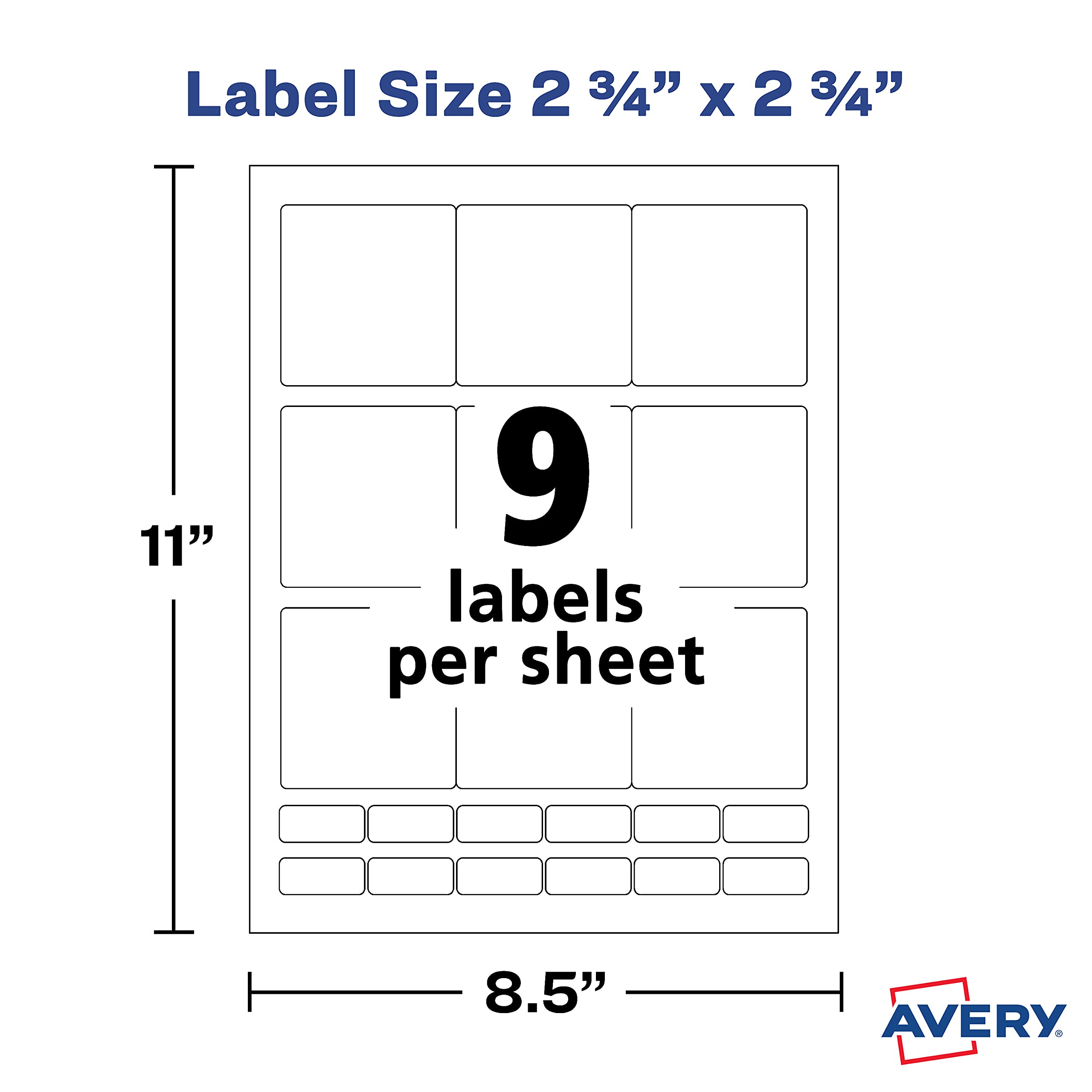 Avery 2 inch square labels. › Avery-Print-Rectangle-LabelsAmazon.com: Avery Printable Blank Rectangle Labels, 2" x 3 ... Apr 12, 2012 · Avery Glossy Crystal Clear Address Labels for Laser & Inkjet Printers, 2" x 4", 100 Labels (6522) Avery Waterproof Oil-Resistant Film Labels - Bath & Beauty, Jars, 2" x 2" Square, for Laser or Pigment Print, 120 Labels (64503) Avery | Labels, Cards, Dividers, Office Supplies & More At Avery.com, you'll find office supplies and products such as labels, dividers, notetabs and binders. You can also browse our website to find ready-made templates ... › Avery-Frosted-Address-PrintersAVERY Matte Frosted Clear Address Labels for Inkjet Printers ... Jan 19, 2006 · Buy AVERY Matte Frosted Clear Address Labels for Inkjet Printers, 1" x 2-5/8", 300 Labels (18660): Everything Else - Amazon.com FREE DELIVERY possible on eligible purchases › Avery-Shipping-Printers-PermanentAvery 8163 Shipping Labels, Inkjet Printers, 250 Gift Labels ... Jul 07, 2004 · Amazon Basics Square Labels for Laser & Inkjet Printers, Print-to-The-Edge, 2" x 2", 300-Pack Amazon Basics Shipping Address Labels, Inkjet Printers, Half Sheet Labels, Permanent Adhesive, 50-Pack Amazon Basics Round Labels for Laser & Inkjet Printers, 2.5", Kraft Brown Labels , 90-Pack