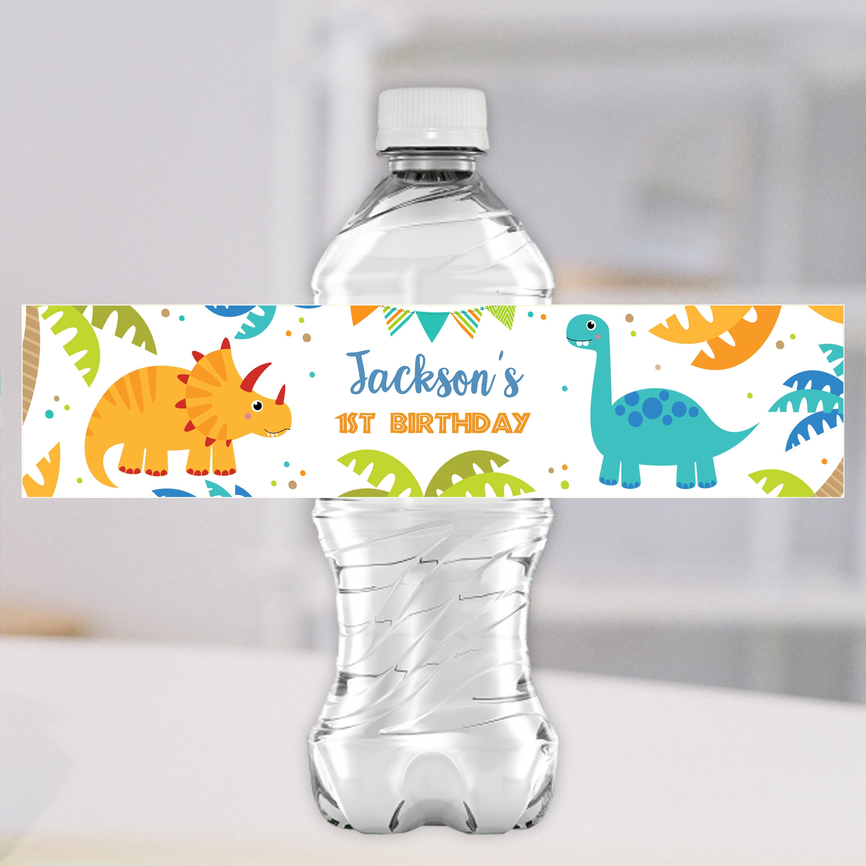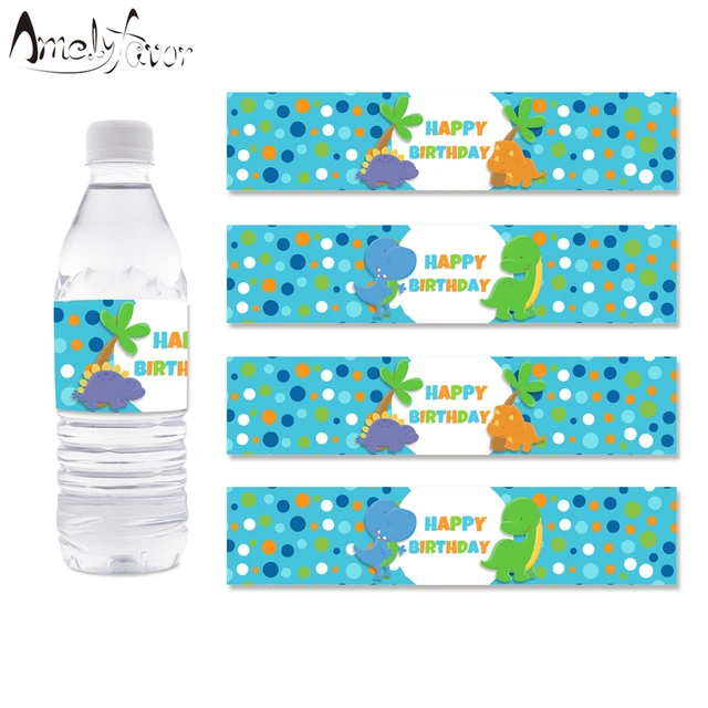 Dinosaur Water Bottle Labels Dinosaur Birthday Water Bottle - Etsy ... Water Bottle Labels Size: 8x2 / 4 per sheet ** Digital file only The files you receive will NOT be editable - it comes as pictured. If you would like to personalize the font, colors, text etc., please message me for a customization quote as additional fee will apply. HOW IT WORKS • Sized to fit on an 8.5 x 11" paper.