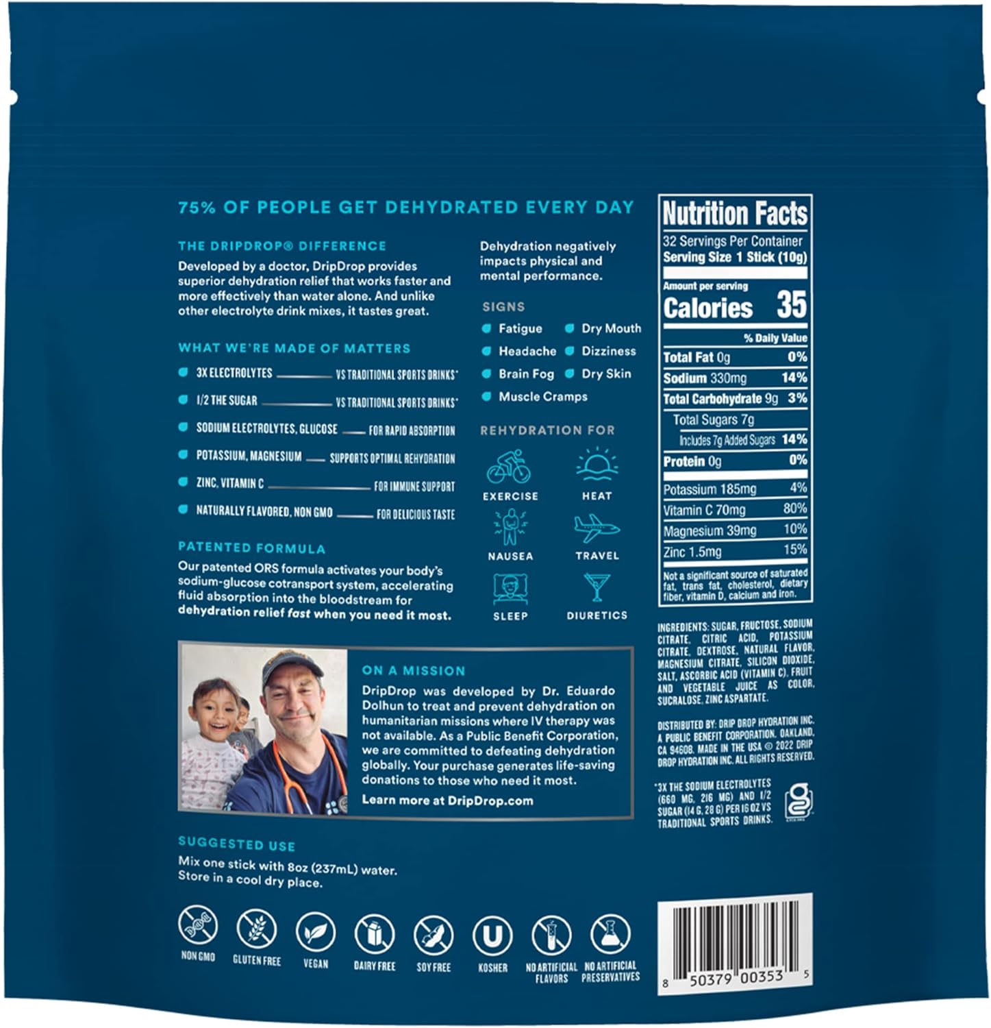 DripDrop Zero Sugar Electrolyte Powder for Fast Dehydration Relief - Lemon Lime 8ct (HSA/FSA Approved)