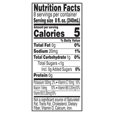 V8 nutrition label. Is V8 good for you? Benefits and nutrition - Medical News Today Sep 28, 2018 · Possible health benefits Vitamin A. According to the Campbell’s website, 8 ounces (oz) of original V8 can supply 40 percent of a person’s daily... Vitamin C. An 8-oz glass of V8 has 150 percent of a person’s daily vitamin C requirement, according to Campbell’s... Servings of vegetables. Experts ... What’s In V8 ® Juice? - V8® Fruit and Vegetable Juices Carrots, celery, beets, watercress, spinach, sweet potatoes, purple carrots and many more unique vegetables are used to create amazingly tasty drinks! Fruit V8 also uses enticing fruits like: tropical mangos, subtly tart blueberries, pomegranates, juicy strawberries, and many others to create fan favorite blends as well as exciting new flavors! V8 +ENERGY® - V8® Fruit and Vegetable Juices V8 +ENERGY ® is a healthy energy drink that’s made from fruit, veggies and tea, giving you 80 mg of caffeine (comparable to a cup of coffee and the leading energy drink). Rich in B vitamins and made with no added sugar, it’s an energy drink you can feel good about. If you prefer your energy lightly carbonated, then check out V8 +SPARKLING ENERGY ® ! V8 juice nutrition, glycemic index, calories, net carbs & more Calcium: 16 mg of 1,000 mg 2% Iron: 0.3 mg of 8 mg 4% Magnesium: 0 mg of 420 mg 0% Phosphorus: 0 mg of 700 mg 0% Potassium: 193 mg of 3,400 mg 6% Sodium: 173 mg of 2,300 mg 8% Zinc: 0 mg of 11 mg 0% Copper: 0 mg of 1 mg 0% Manganese: 0 mg of 2 mg 0% Selenium: 0 µg of 55 µg 0% Choline: 0 mg of 550 mg 0% More about mineral coverage chart